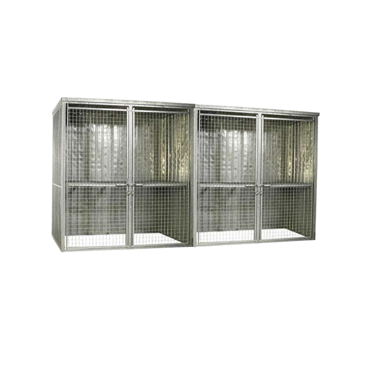 - Frame: 2,5 cm dik kokerframe met voldamwand panelen en gaasdeuren (5×5 cm maaswijdte)